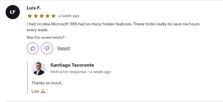 The Microsoft 365 Tricks has shown proven results among the many people who have taken the course, as well as in the live masterclasses I’ve conducted.